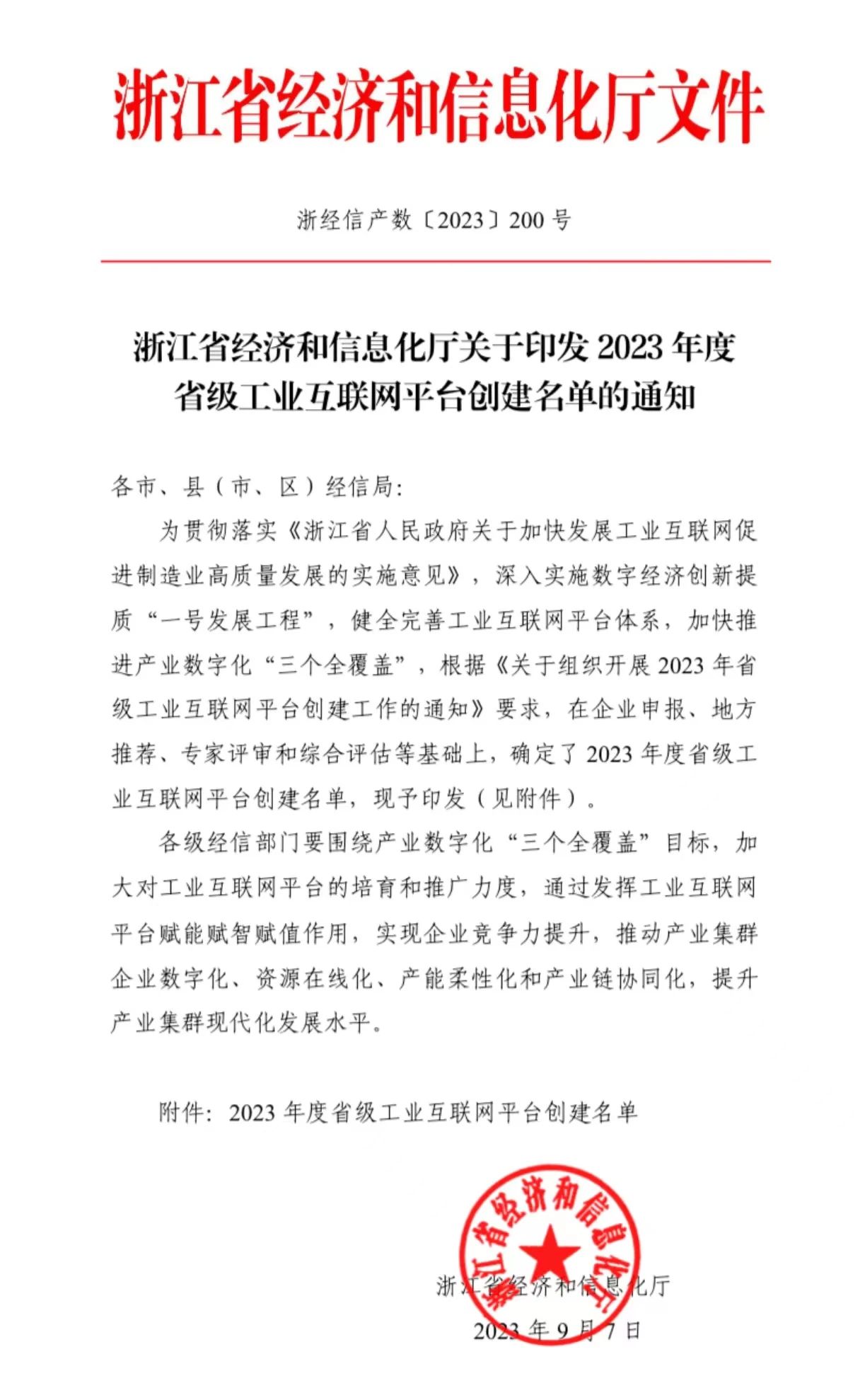 省级工业互联网平台是浙江省“1+N”平台体系的重要组成部分,对浙江省产业基础高级化、产业链现代化,促进制造业高质量发展,打造“重要窗口”的标志性成果具有重要作用。
